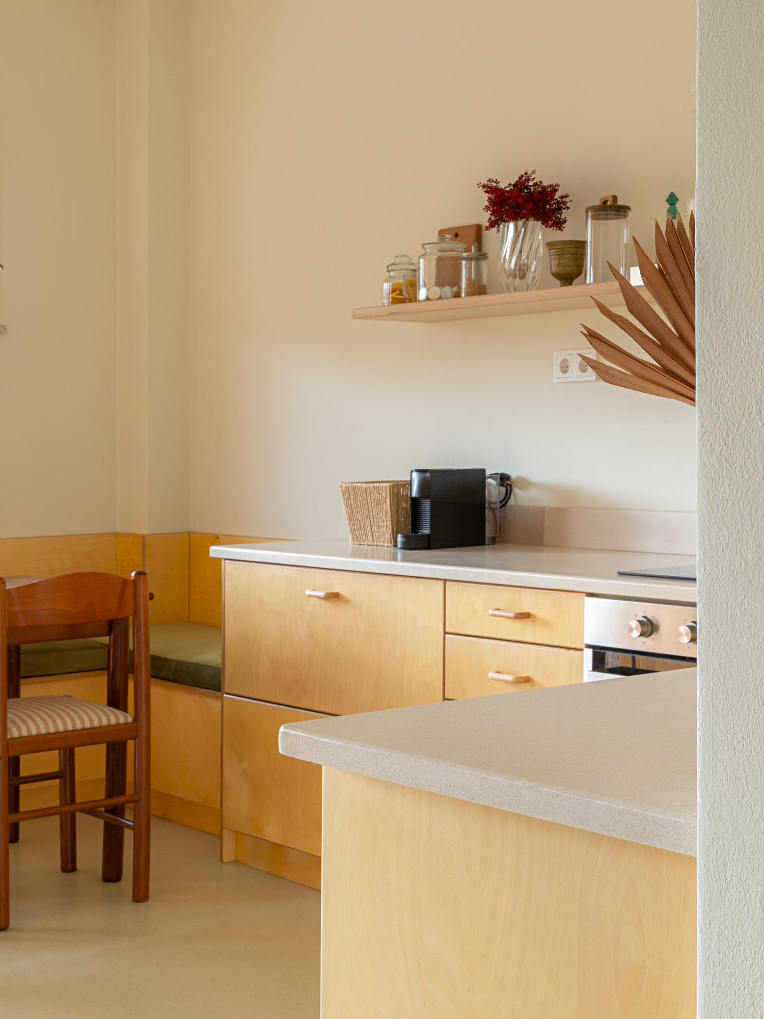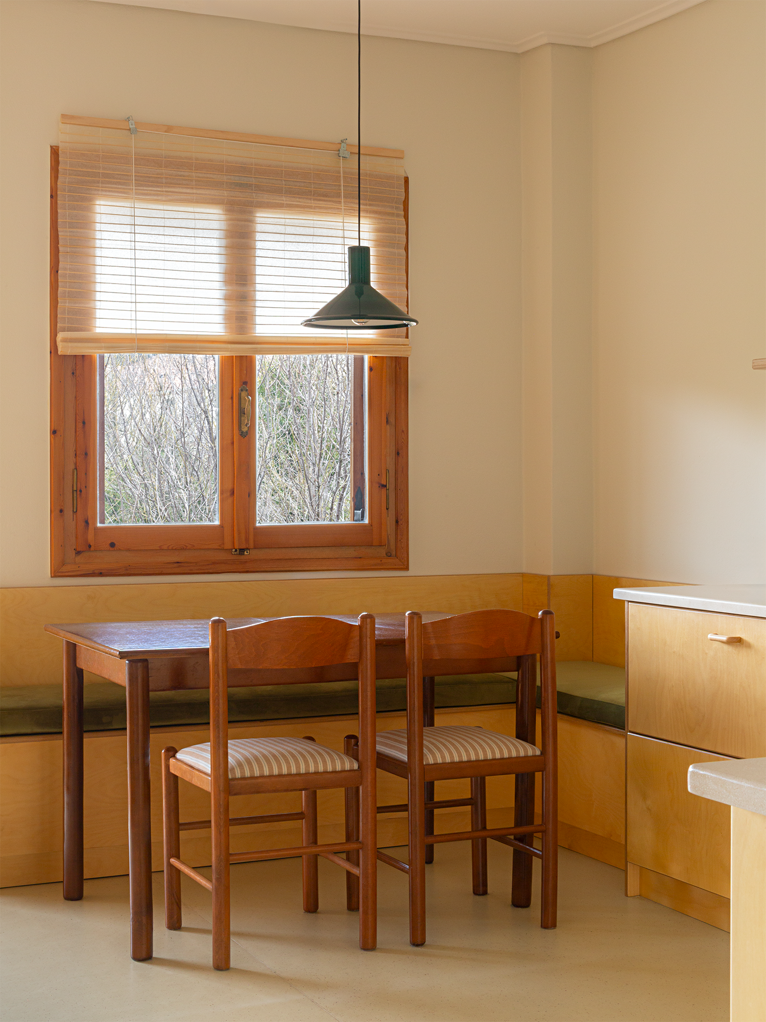 Light-filled and airy, Lea is a serene mountain retreat designed for slowing down and unwinding. Set directly on Vytina’s scenic Path of Love — yet just a five-minute walk from the village center — it offers the rare balance of village charm and complete forest tranquility.