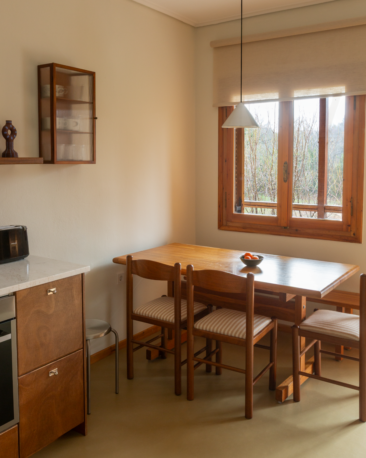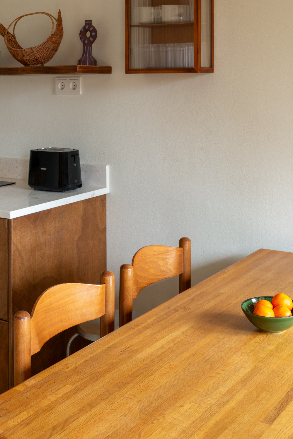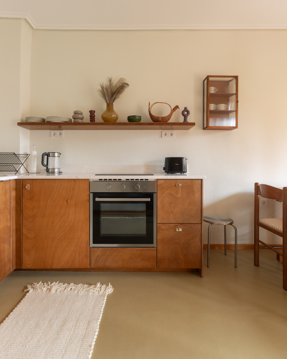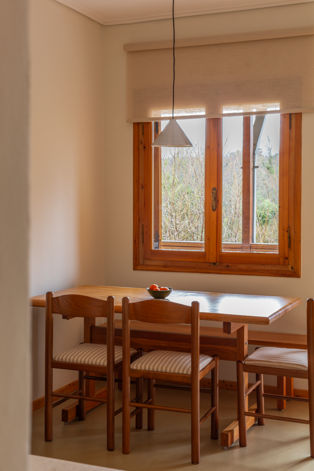 Richer in tone and more intimate in ambiance, Daphne is a warm mountain retreat designed for fresh mountain mornings and quiet fireside evenings.Located directly on Vytina’s scenic Path of Love, it’s just a short walk from the village, yet peacefully surrounded by forest calm.