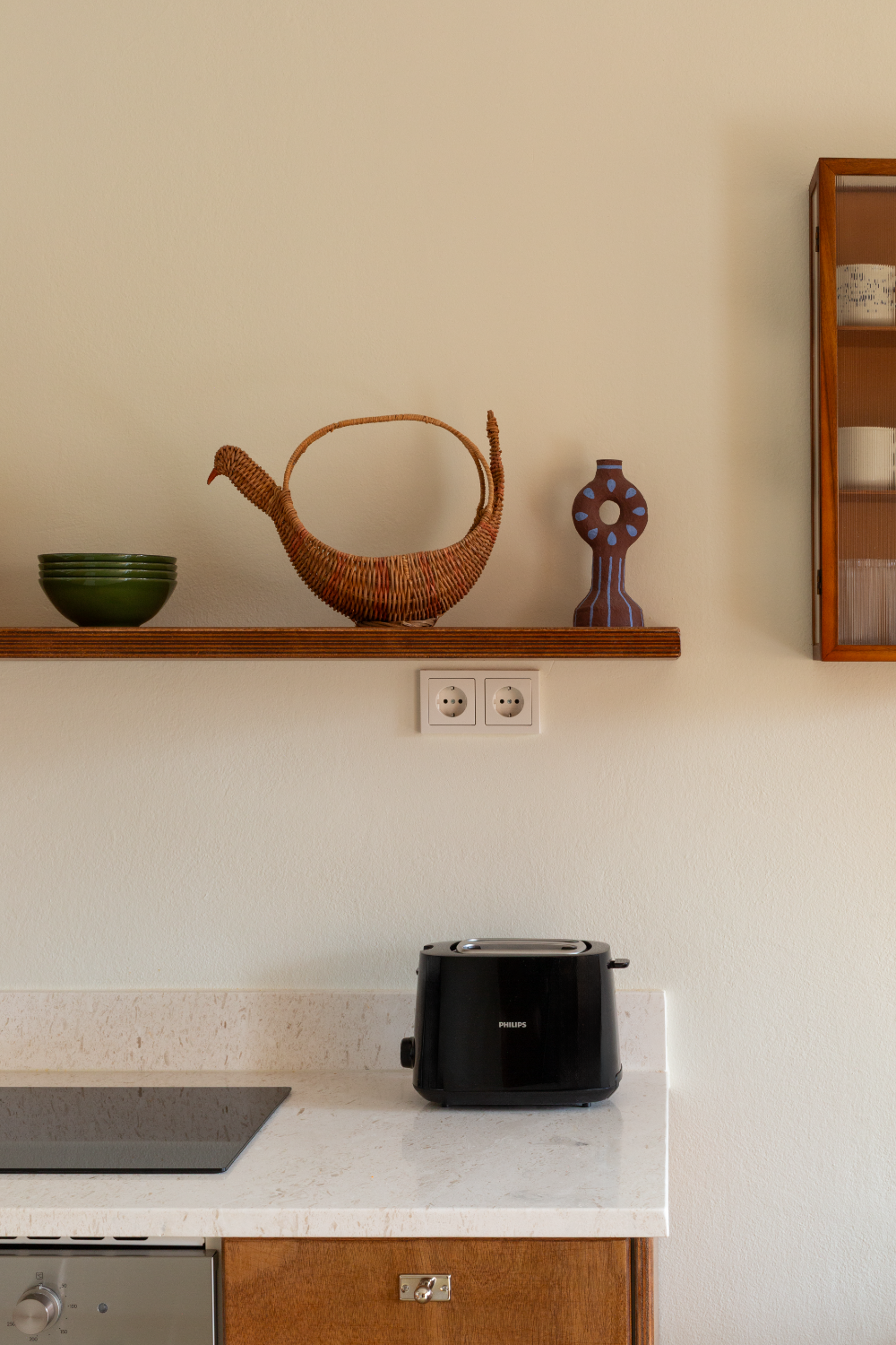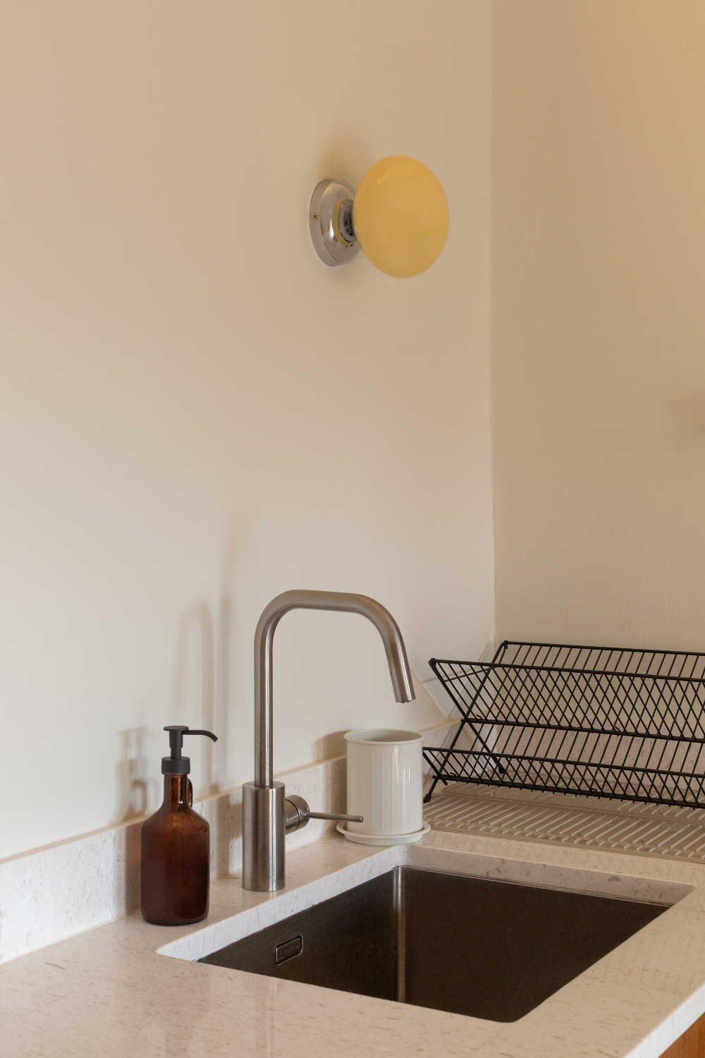 The loft comfortably accommodates up to five guests.The upper mezzanine is appointed with a queen-size bed and a convertible armchair, complemented downstairs by a double sofa bed and an additional sofa if required.